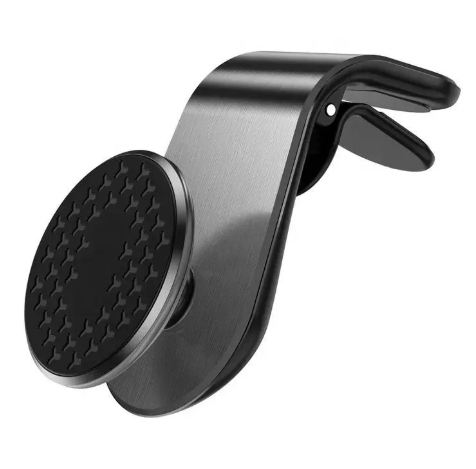 Holder de carro magnético rejilla F19. Soporte magnético diseñado para colocarse en la rejilla de ventilación del carro. Ofrece sujeción firme, rotación de 360°, instalación sencilla y compatibilidad universal con celulares.